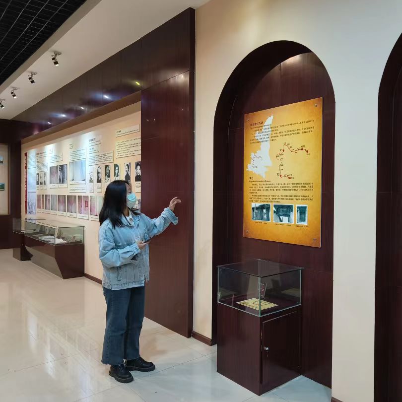 为迎接教育部本科教育教学工作审核评估和学校建校95周年,为了提升校史讲解队成员的讲解水平。近日,校史讲解队副队长王静雯在校史馆对讲解员们进行深入细致的讲解技能培训。