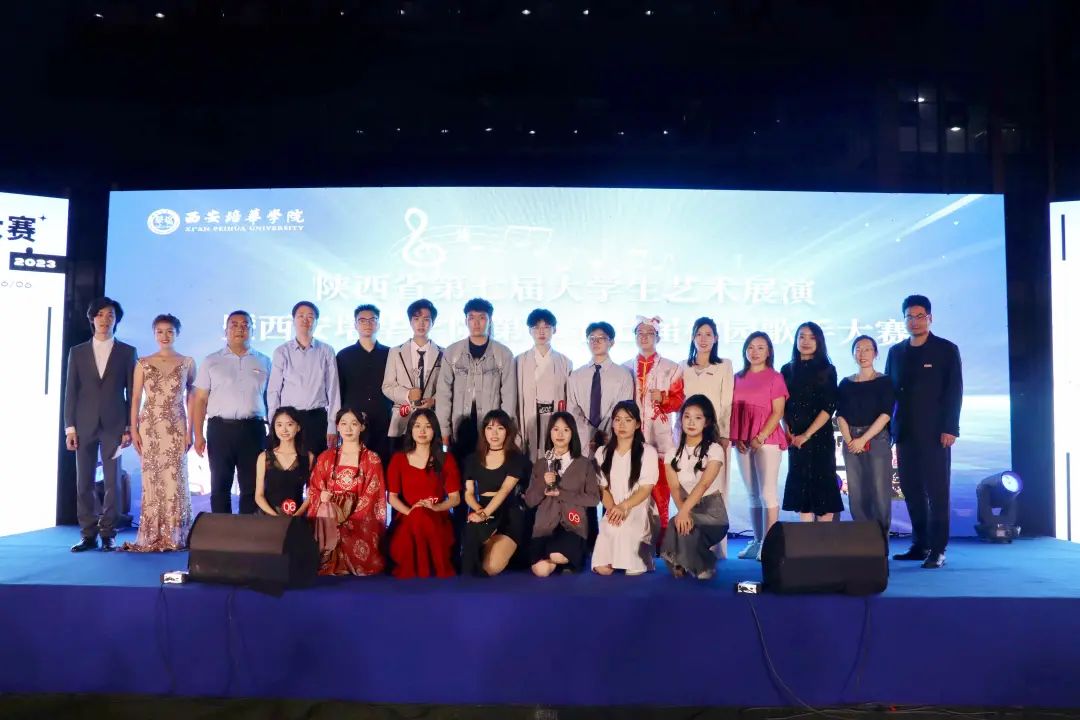比赛结束后,选手和评委老师上台进行合影,西安培华学院第二十七届校园歌手大赛圆满落幕。本次歌手大赛丰富了同学们的校园文化生活,为同学们提供了一个发掘潜力、展示自我的舞台。展现了歌声与理想同行,艺术与梦想齐飞的美好校园生活。