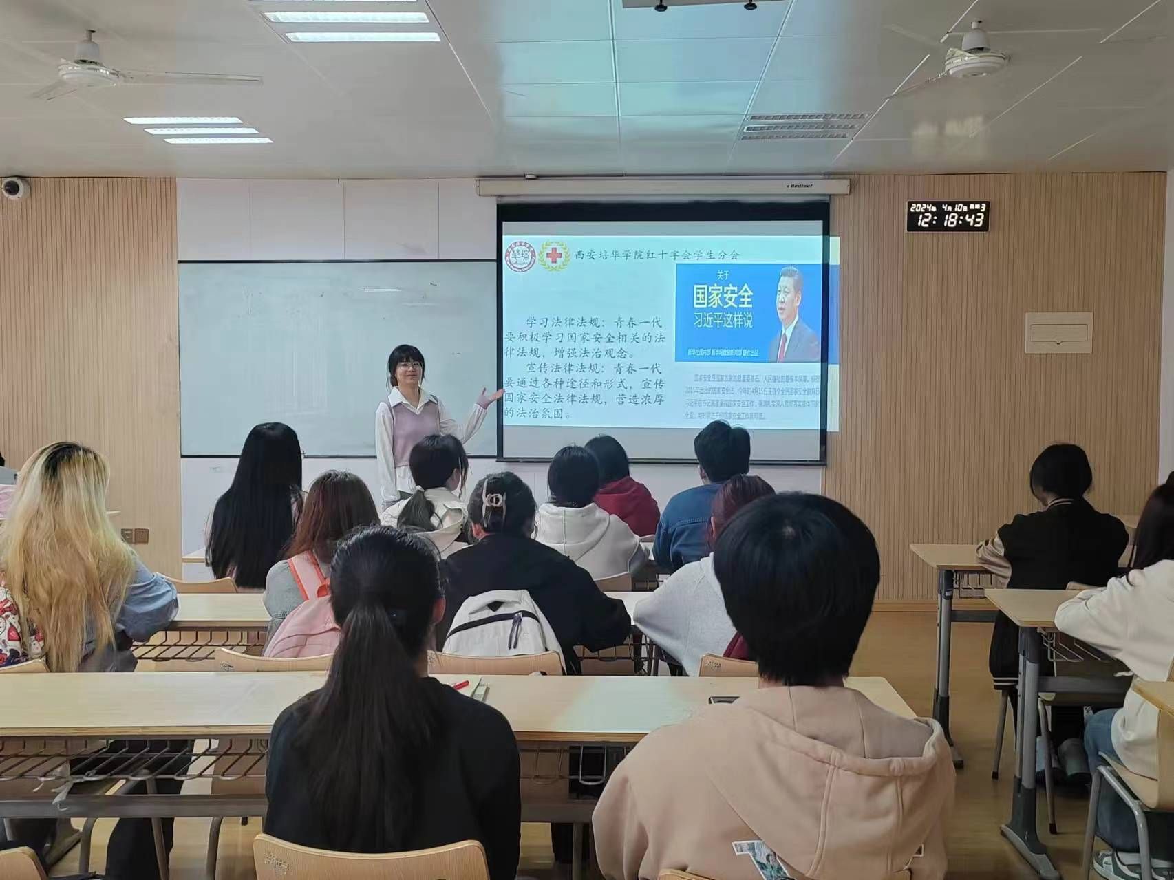 4月10日中午,西安培华学院红十字会学生分会于博远楼开展“守护国家安全,践行青春使命”国家安全教育宣传活动。