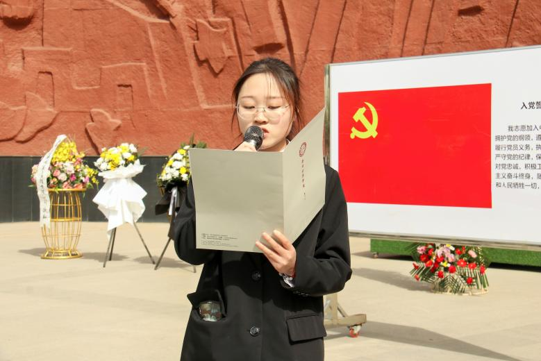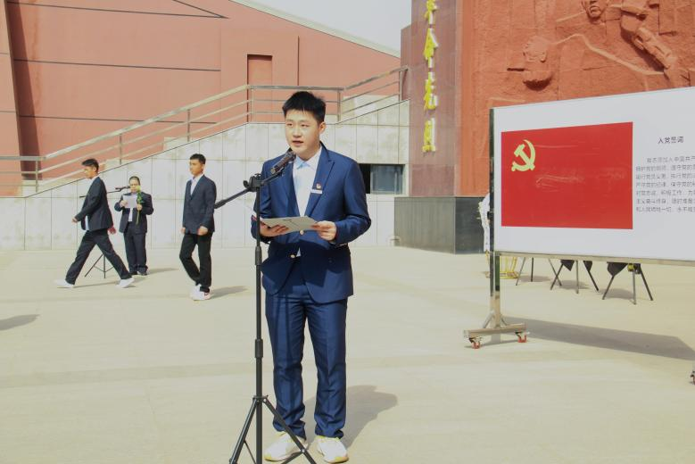 随后,全体师生面向党旗,攥紧右拳,领誓人铿锵有力地带领培华青年重温入党誓词。誓言声回荡陵园,惊起碑前白鸽,恰似百年前暗夜中的星火重燃,铁骨铮铮一腔热血的爱国精神在此刻重塑燎原。在庄严仪式中追思革命英烈,彰显培华学子赓续红色血脉的坚定决心。