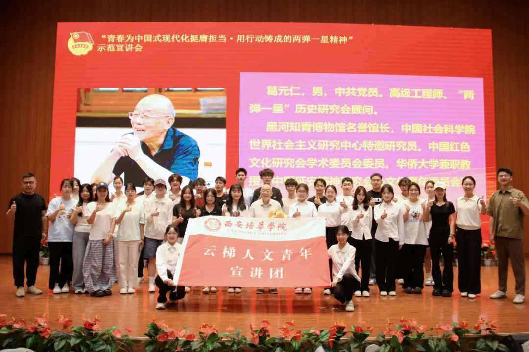为深化爱国主义教育,引领培华青年体悟“两弹一星”精神的时代伟力,厚植家国情怀、勇担时代使命,共青团西安培华学院委员会于5月20日16点30分于维之图书馆报告厅举办“青春为中国式现代化挺膺担当·用行动铸就的两弹一星精神”示范宣讲会。活动特邀“两弹一星”元勋之子葛元仁老师解读其精神内核,为师生带来一场深受感悟的盛宴。