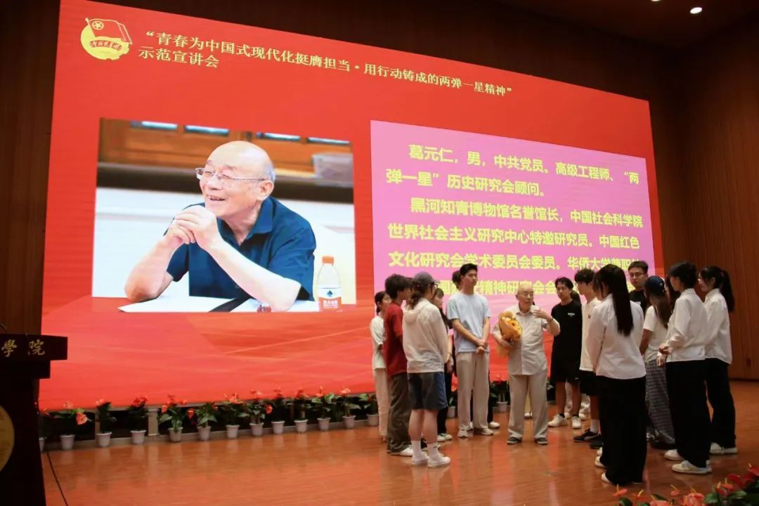 此次“两弹一星”精神大讲堂,既是对辉煌历史的深情回望,更是对时代使命的铿锵回应。那些隐姓埋名的科研先驱以热血熔铸的“两弹一星”精神,已然成为新时代青年锚定理想的坐标。团员青年们深刻领悟:传承红色基因不是对历史的简单复刻,而是以“功成不必在我,功成必定有我”的担当,以青春之力共筑中国梦,用青春的肩膀肩负时代重任。