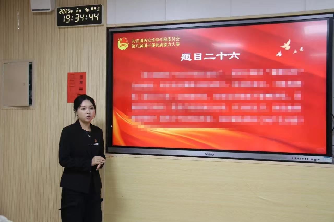 在新时代征程的奋进浪潮里,团干部作为共青团事业的中坚力量,是团员青年的引路人、知心人、热心人。为进一步引领团员青年坚定理想信念、练就过硬本领、形成作风优良,强化我校共青团团干部队伍建设,6月19日西安培华学院第八届团干部素质能力大赛总决赛在维之图书馆三楼报告厅顺利举行。