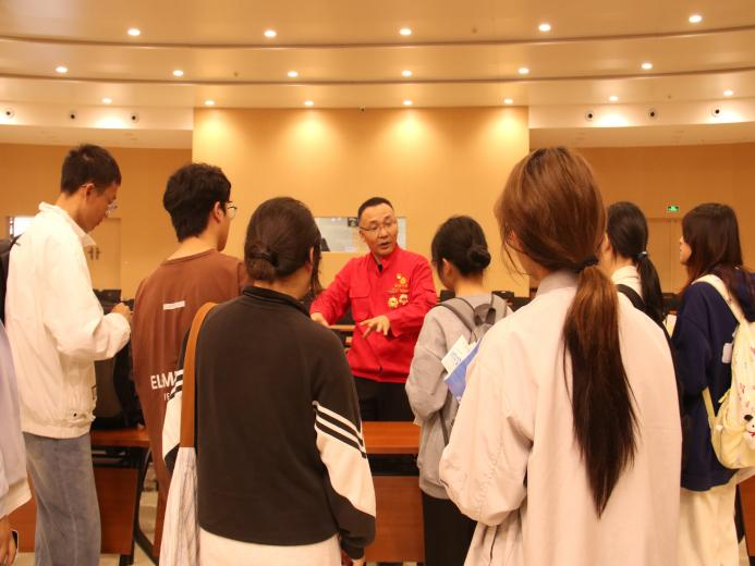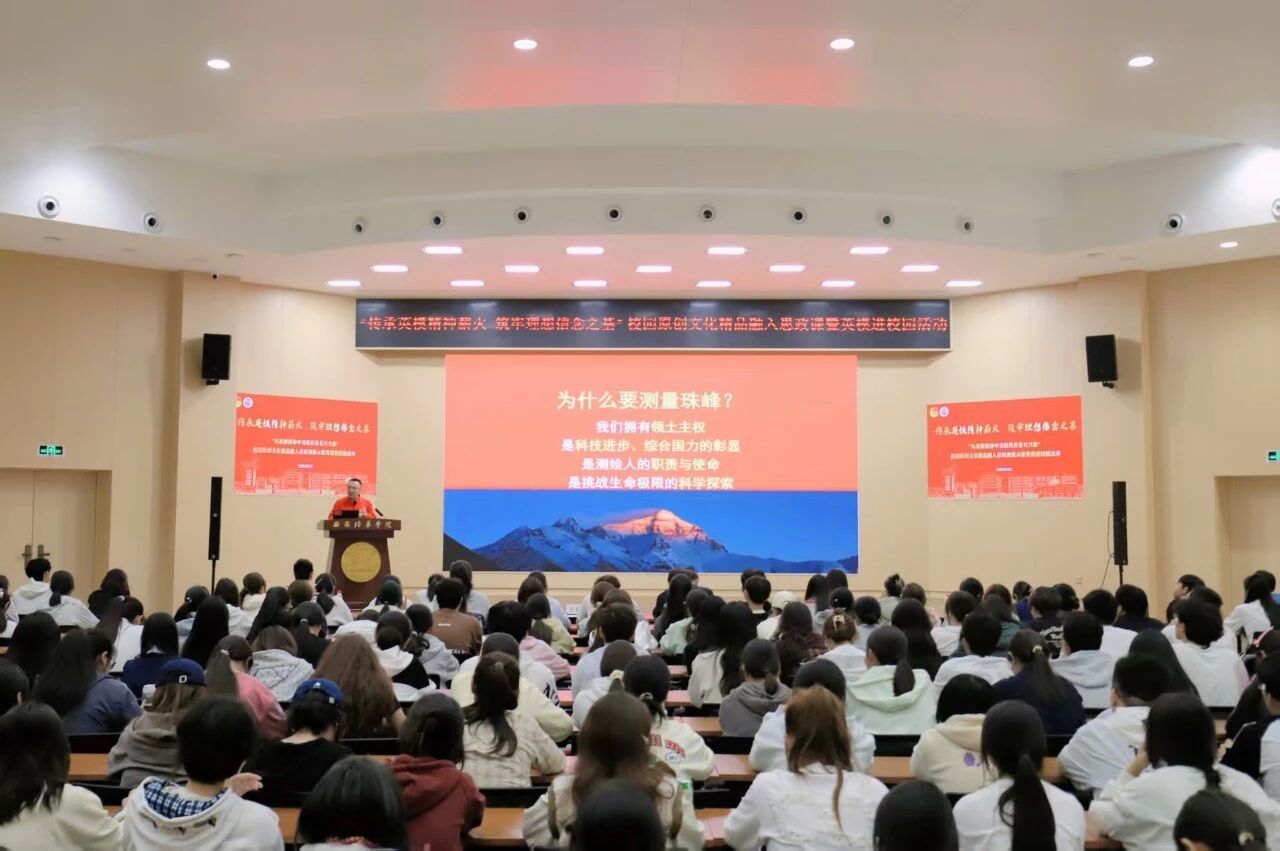 “测绘是国家的眼睛,每一次对珠峰的测量,都是对祖国版图的精准标注。”没有华丽的修辞,任老师用零下30℃的严寒、缺氧环境中的坚守、冰裂带旁的仪器校准这些细节,把测绘人的“艰难困苦”掰成了触手可及的感动。他特别提到2020年珠峰高程测量的“中国高度”:8848.86米的背后,是无数测绘人用脚步丈量、用仪器校准、用信念支撑的结果。这不是一个数字,是中国测绘人对“精确”二字的信仰,更是对家国山河的深情。这种坚韧不拔的奋斗精神,正是抗战精神在新时代的生动体现,在场培华青年经久不息的掌声成为对这份坚守与奉献最真挚的致敬。