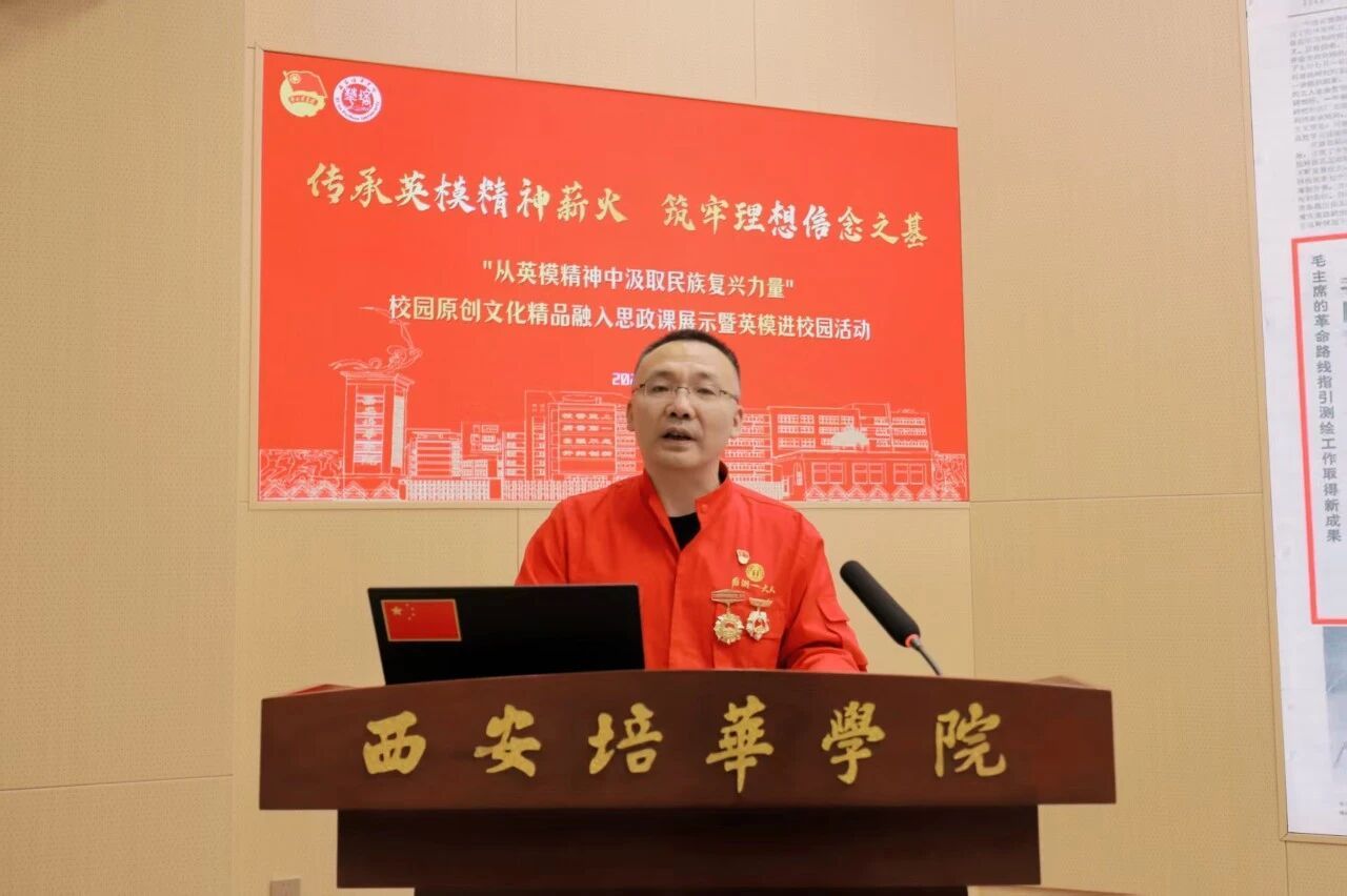 为弘扬伟大爱国主义精神,充分发挥榜样引领作用,校团委联合关工委开展“传承英模精神薪火 筑牢理想信念之基——从英模精神中汲取民族复兴力量”校园原创文化精品融入思政课展示暨英模进校园活动,活动邀请陕西省教育系统英模报告团成员——自然资源部第一大地测量队纪委书记、高级工程师任秀波作主题宣讲,引导培华青年从壮烈的抗战历史中赓续英雄血脉,从当代英模的实干事迹中汲取信念力量。
