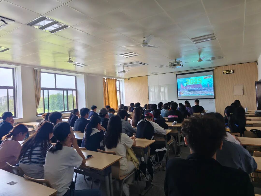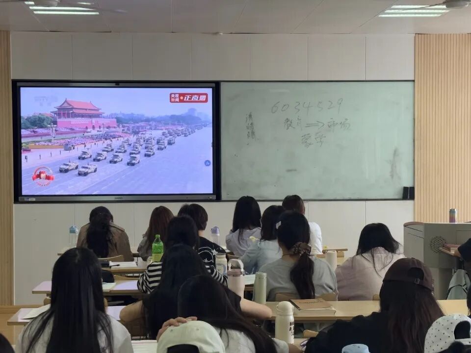 与此同时,各二级学院团委结合师生课程安排,在教学楼教室、学院活动室组织收看阅兵直播,或是通过央视新闻客户端等媒体平台自行收看。团员青年们对抗战历史有了更真切的感受。培华校园里回荡着阅兵仪式上铿锵有力的脚步声,受阅将士迈着壮阔步伐,每一步都掷地有声!当受阅方阵以排山倒海之势通过天安门,当新型装备彰显国防实力,当老兵方队敬起军礼的庄重感,师生们围坐一起,你一言我一语:分享着看到先进装备时的自豪,倾诉着听到抗战故事时的感动,也聊到和平的来之不易。这些讨论,让书本上的历史变得鲜活,也让抗战精神自然而然地走进了培华青年心里。