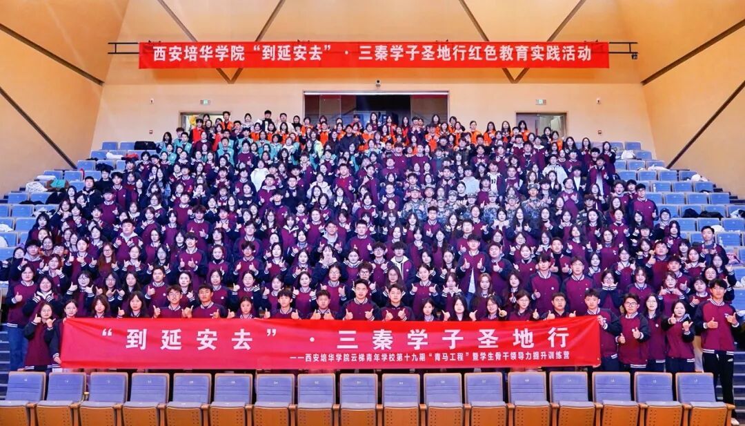 384名师生齐聚延安大剧院,举行西安培华学院云梯青年学校第十九期“青马工程”学生骨干领导力提升训练营暨西安培华学院“到延安去•三秦学子圣地行”红色教育实践研学活动开班仪式。