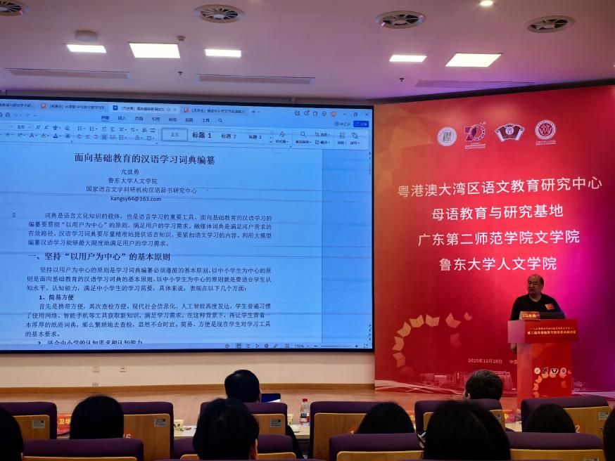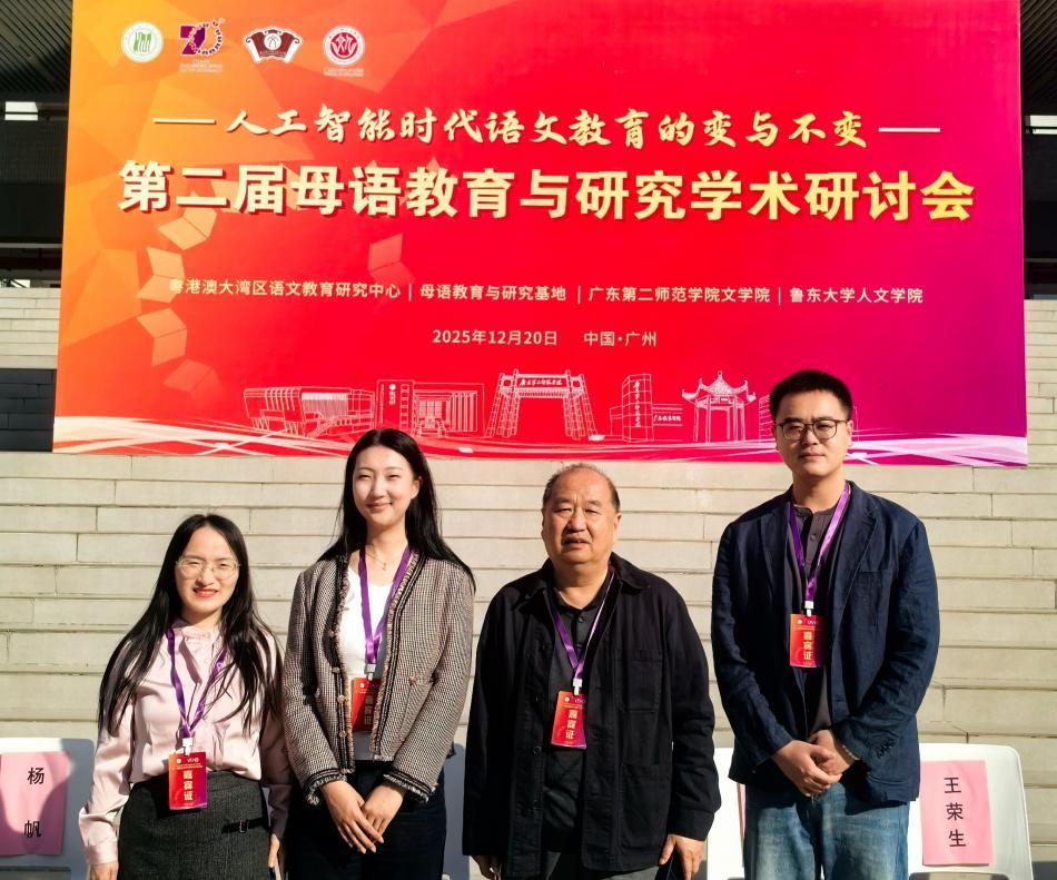 2025年12月20日,由粤港澳大湾区语文教育研究中心、母语教育与研究基地、广东第二师范学院文学院、鲁东大学人文学院联合举办的“第二届母语教育与研究学术研讨会”在广州隆重召开。我院亢世勇教授作为嘉宾在主会场进行了专题报告,人文素养与语文教育教研室教师吕明风、杨皓明、党书琪出席了会议并在分会场中做学术报告,和与会专家同行进行了深入交流。本次学术研讨会聚焦人工智能技术尤其是大语言模型的快速迭代对语文教育带来的机遇和挑战,以“人工智能时代语文教育的变与不变”为主题,邀请了多省市的一线教师和科研学者,为更好地推动母语教育与研究工作展开了深入研讨。