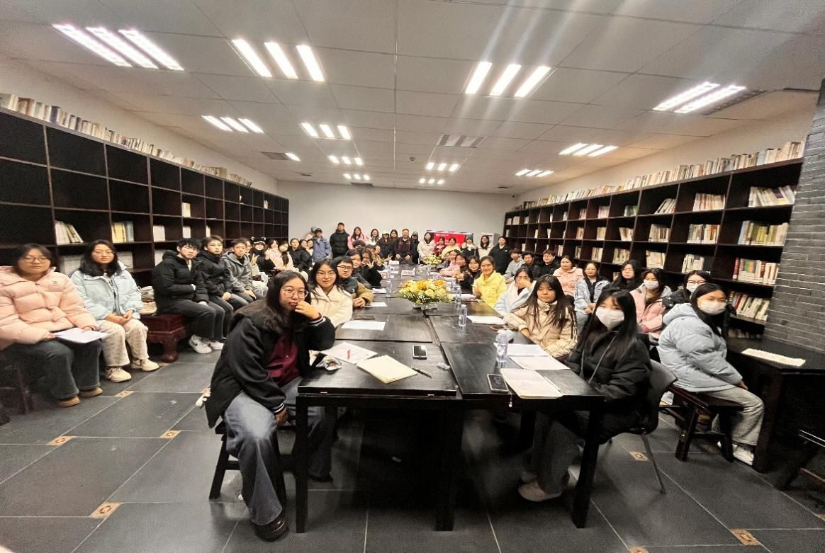 为深化教学改革,提升学生非虚构写作核心能力,2025年12月24日上午10:00至12:00,大学写作课程组在汇知楼国学馆举办了传记名家忽培元先生创作经验分享会,丰富了课程的教学模式,为学生带来了沉浸式、实战型的写作学习体验。大学写作课程组赵静老师、忽培元苍生《三部曲》研究中心秘书李雅楠老师、2025级汉语言文学11班的同学及非虚构写作爱好者参与了此次活动。