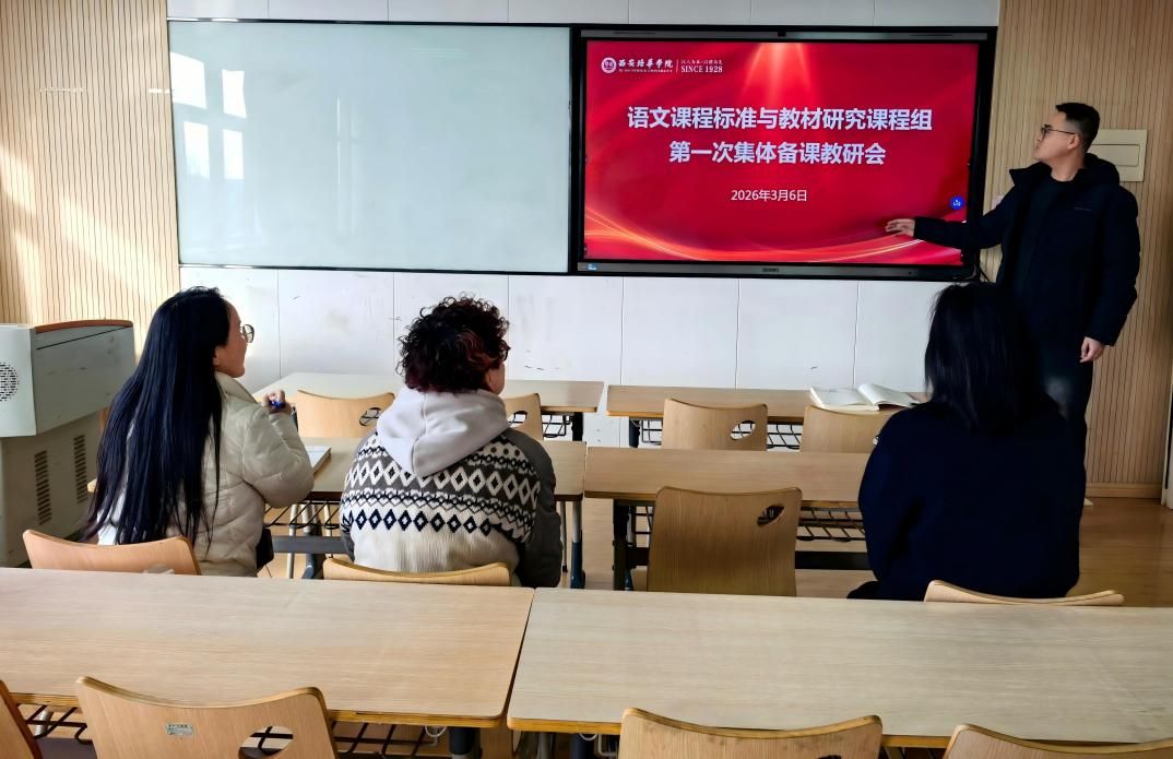 2026年3月6日12点,学院人文素养与语文教育教研室《语文课程标准与教材研究》课程组在格物楼1401教室召开新学期第一次集体教研活动。本次教研活动由课程组负责人杨皓明老师主持,课程组内专职教师参加。课程组围绕大纲、开课说明以及本学期更换的新教材进行了讨论,重点确定了本学期授课计划和课程建设思路,为开展新一轮教学工作明确了方向。