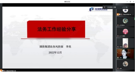 一个人职业的选择,是人生事业发展的起点,选择职业的正确与否,将直接关系到人生事业的成功和失败。职业生涯规划能够帮助青年人成才,是青年人成才的有效方法。确立目标,是职业生涯规划的重要内容。为进一步增强法学专业同学对未来职业的规划意识,了解更多职业发展社会背景,人文与国际教育学院法学系特邀请到盐城国投集团法务风控部主管李亮法务为主讲人,于2022年12月19日晚7点召开第三场法学专业职业生涯规划与就业指导系列讲座,法学专业21级全体学业导师及学生参加了本次讲座。在本次讲座中,李亮主管主要围绕法务的日常工作、法务的能力要求、学习规划等三个方面进行讲解。