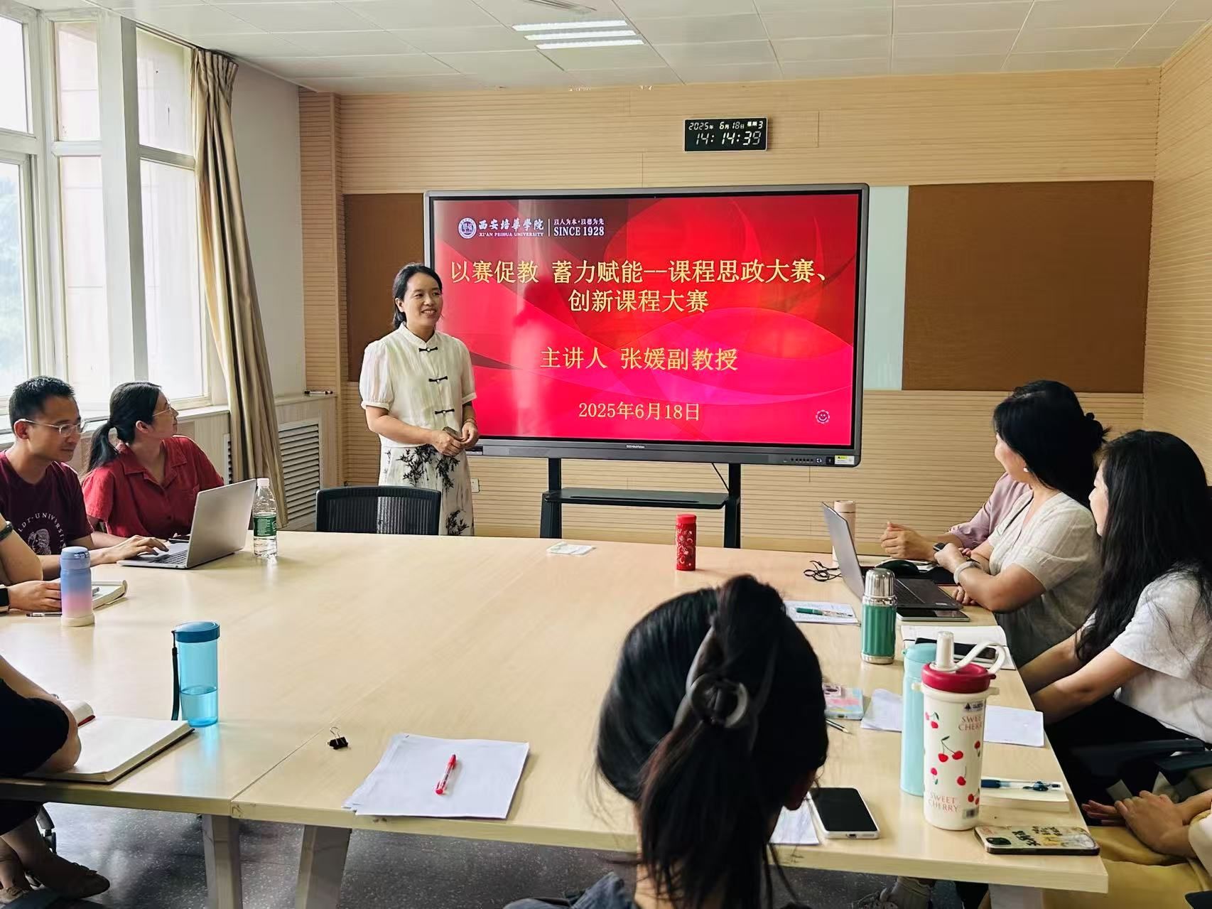 为深入推进学院中文系教育教学改革,提升教师教学竞赛能力,2025年6月18日下午2点,人文与国际教育学院中文系文学教研组举办了主题为“以赛促教 蓄力赋能——课程思政大赛、创新课程大赛经验分享”的教研活动。本次活动旨在通过优秀教师的经验分享与互动交流,帮助教师克服参赛畏难情绪,提升教学竞赛水平,进一步推动“以赛促教、以赛促学”的实践探索。会议由崔雅男副教授主持,张媛副教授担任主讲,文学教研组全体教师参会。