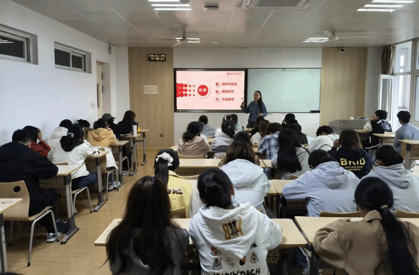本次专业介绍会议由2025级新生各班级的所有学业导师,分专题、分班级、系统化地为全体新生带来了一场内容翔实、充满人文关怀的专业导航。专业认知教育围绕“培养目标与就业前景”“课程体系”以及“毕业要求与学业规划”三大核心板块展开。