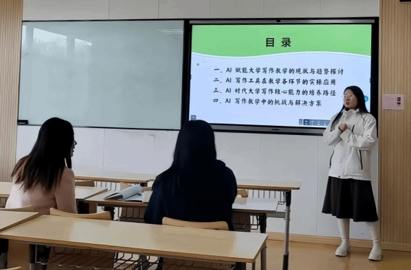 活动伊始,王玉玲老师首先就当前AI技术发展对写作教学带来的机遇与挑战进行了开场引导。她指出,在人工智能快速发展的背景下,写作教学既面临理念重构的迫切需求,也迎来教学模式创新的重要契机,亟需教师团队主动探索、积极应对。