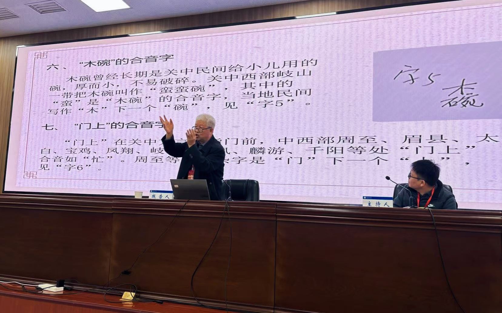 2025年10月31日—11月2日,首届民间杂字学术讨论会在运城学院隆重举行,来自全国40多所大学、科研机构、出版社、杂志社的80多位专家学者以及运城学院师生七八百人参加了这次学术盛会。我校文学院教授孙立新以《关中民间杂字略说》为题,对关中民间普遍使用的15个杂字的造字理据、音义特征、地域分布等情况进行了大会发言。孙教授从文字类型学角度研究讨论了这些关中方言区的民间杂字,如关中中东部有的方言点“娘”的口语音nüó指祖母或曾祖母,当地人不知道nüó是口语音,就造了一个“从女虐声”的杂字;近一半是合音字在民间相应的杂字或无本字的杂字,如合音字“嫑”。孙教授指出:“不要”的合音字“嫑”属于关中民间阻断词,跟北京话的“甭”不是一回事,因为“不用”的合音字“甭”不是阻断词。还有,无本字的杂字如关中中西部有关方言点指称踝骨时用到一个杂字“栧”,而鄠邑民间把砍去树枝以后留的比较长的短截叫作“栧栧、栧栧儿、栧栧子”;鄠邑对于“栧”字的读音,翻译成为汉语拼音字母是zhuǎi。改革开放以前,关中民间包括知识分子大量地用到了“从口片声”的杂字“!”。改革开放以后,有学者考证出杂字“!”的本字是“谝piǎn”,于是,杂字“!”逐渐淡出人们的视野。关中方言“谝”字的语义主要有。①聊天叫作“谝闲传”,或者简称“谝”;②吹嘘,言过其实甚至胡说八道,关中民间的俗成语如“胡吹乱谝/胡吹浪谝”指漫无边际地胡乱吹嘘;③凤翔一带把很糟糕、很令人失望、尴尬叫作“谝匝啦”。考据内容如,《说文·言部》曰:“谝,便巧言也。”《玉篇·言部》:“谝,步连、符善二切,巧佞之言也。”《字汇·言部》:“谝,巧言也。”《五方元音》“一天”匏上:“谝,夸也。”