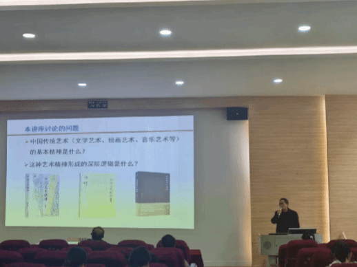 讲座开篇,赵维森教授抛出的两个问题瞬间抓住全场注意力:“中国传统艺术的灵魂是什么?这份灵魂又从何而来?”他先带大家纵览学术史上的经典观点,例如徐复观在《中国艺术精神》中提炼的“孔子与庄子双维艺术品格”,彭吉象在《中国艺术学》中整合的“儒道禅三家审美精神”,随后话锋一转,提出自己的独到见解:中国传统艺术的精神内核,一则是对生命的宏大观照与深情礼赞,二则是对“形而上”艺术境界的执着叩问。