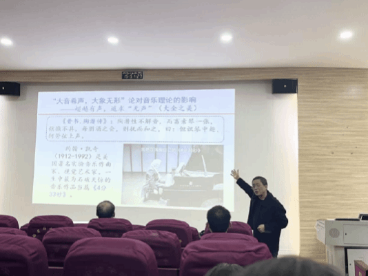 整场讲座,赵维森教授就像一位资深的文化向导,带着大家在哲学与艺术的迷宫中穿梭,时而驻足于《道德经》的文字前细品深意,时而漫步在传统艺术的长廊里赏析精品。他的解读不仅让“大音希声,大象无形”的古老哲语变得可感可触,更让中国传统艺术的精神密码在当代听众心中清晰解码,为大家打开了一扇通往传统文化深层审美世界的大门。