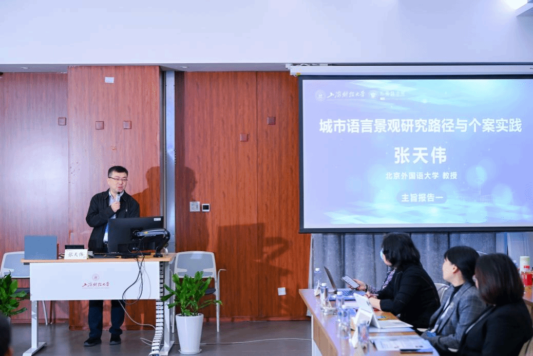 本次论坛由上海财经大学外国语学院英语系主任艾斌教授主持,邀请了来自北京外国语大学、复旦大学、同济大学、浙江大学等高校的11位专家就语言景观与社会治理诸方面的理论研究与实践个案作主旨报告。12月6日上午9时,北京外国语大学科研处处长、《语言政策与规划研究》主编张天伟教授作开场报告,报告主旨为《城市语言景观研究路径与个案实践》。张教授从宏观研究切入,强调了城市语言景观在参与城市治理、构建城市形象、整合城市认同方面的重要作用,并在梳理城市语言景观主要研究议题、热点、方法、理论等基础上,结合中国语境下的个案研究,从多学科交叉、多方法融合、多视角拓展等三个方面对发展趋势进行了展望和思考,为与会者打开了城市语言景观研究的诸多窗口。接下来复旦大学郑咏滟教授、同济大学沈骑教授、东南大学韩亚文教授、上海财经大学程倩副教授围绕南南移民家庭语言传承、全球南方国际组织语言治理、来华留学生教育中的语言景观和全球南方世博符号叙事等多个前沿议题展开深入探讨,学者们从多学科、多视角出发,为全球南方语言研究与实践提供了新思路与新方向。12月6日下午会议议题从社会某一现象或社会具体场景出发,探讨生活中的语言景观符号。研究涵盖中国大陆城市轨道交通语言生态、国产恋爱游戏中英语的符号表征、中国内陆乡村语言景观的时空特征、社区咖啡馆语言景观的动态建构,以及全球南方视域下多感官语言景观的社会治理价值与跨国超市的多语协同策略等,从城市到乡村、从虚拟到现实、从本土到全球等不同维度,为语言景观研究的深化与拓展提供了丰富的学术视角。