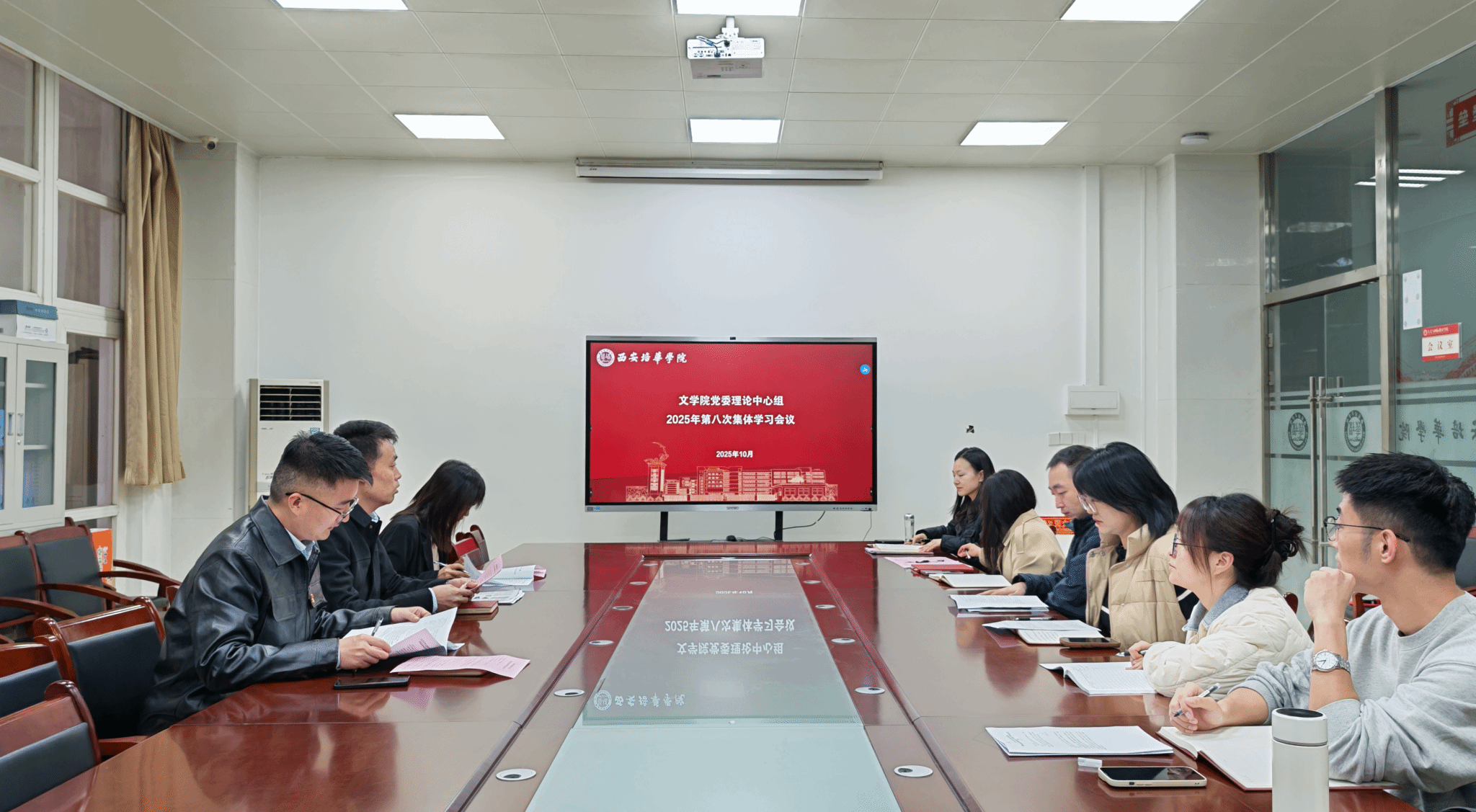 2025年10月30日上午,文学院党委理论中心组第八次集体学习会议在格物楼第四会议室召开。本次学习由学院党委书记南兵主持,学院党委委员、各支部书记、专(兼)职党务干事参加了学习。