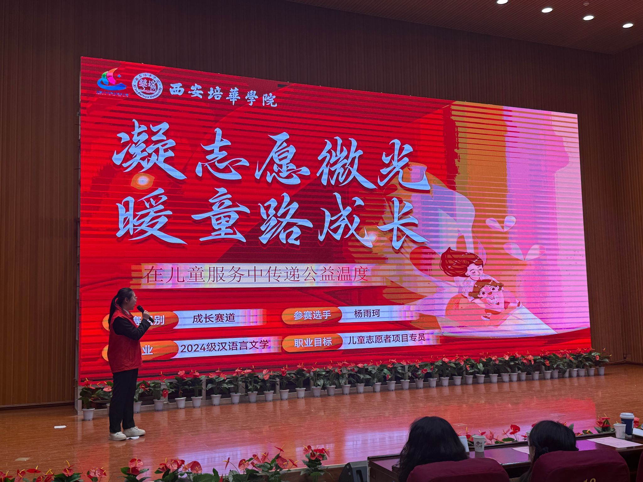本届大赛中,文学院学子凭借清晰的职业认知、科学的规划路径和出色的现场展示,赢得了评委的广泛认可。其中,杨雨珂同学以“儿童志愿者项目专员”为明确职业目标,紧扣公益服务领域,展现了扎实的调研基础、深刻的志愿情怀和可操作的成长阶段设计,最终荣获成长赛道二等奖。