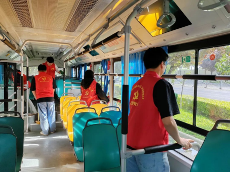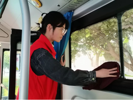 在组织的带领下,志愿者们积极参与本次五一劳动志愿活动:打扫公交车及其他公共设施、擦拭公交车窗污垢、清扫车内垃圾,擦亮城市名片。志愿者们的辛勤付出,不仅净化了公车的卫生环境,也理解了清洁——这项工作的不易,更坚定了为社会持续奉献雷锋精神的信念。