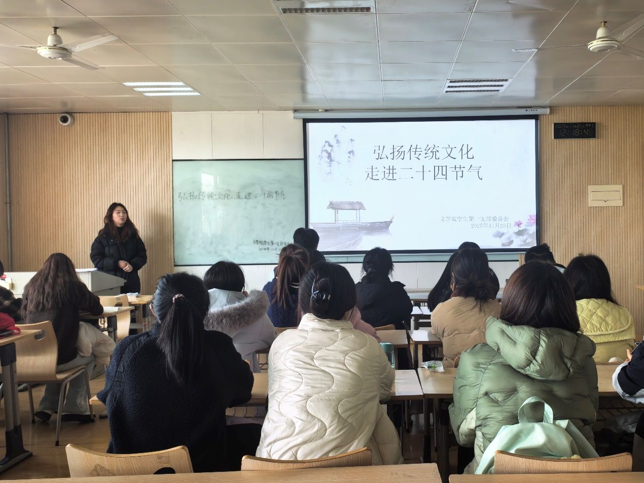 二十四节气是中华民族历史文化长河中经过几千年所形成的关于中国文明的历史积淀与优秀成果,饱含丰富的民族文化基因和古代中国的文明符号。为传承弘扬中华优秀传统文化,把优秀传统文化的元素和理念贯彻到学生的日常学习生活中,促进汉语言文学专业学生的全面发展,文学院举办“弘扬传统文化 走进廿四节气”主题活动,进一步激发学生探究优秀传统文化的兴趣。