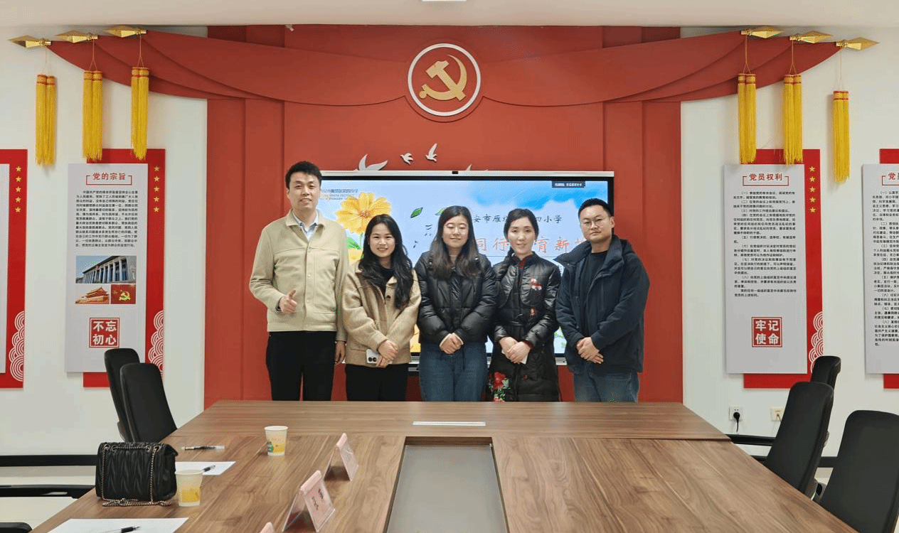 为深化校地合作,精准对接用人单位需求,扎实推进2026届毕业生实习就业工作,1月19日,文学院党委书记兼行政副院长南兵、院长助理张萍教授、实习负责老师姬志垒、教学干事王胤钧一行前往雁塔区第四小学,开展访企拓岗调研交流活动。雁塔区第四小学党支部书记、校长文燕,教学副校长李侠等校领导热情接待并出席相关活动。