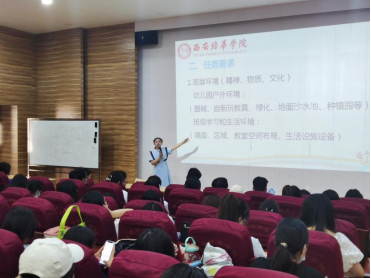 为保证学前教育专业学生全面了解今年专业实习的安排和注意事项,做好专业实习准备工作,为之后的就业打好基础。2022年6月1日中午13:00在格物楼J101阶梯教室,西安培华学院人文与国际教育学院学前教育系对2021级专升本全体学生召开了专业实习动员大会。由学前教育系教师李林娜主持。