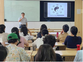 首先,李教授从《周易》与中国人的智慧入手,介绍了筷子、围棋、烹调和书法中所蕴含的《周易》理念;接着,对《周易》的符号与阴阳的关系进行了阐述。在分享过程中李教授引用殷高宗对宰相所说的话:“若作和羹、尔惟盐梅。”治理国家就像作羹汤一样,重要的是掌握好盐和醋的比例。李教授通过历史文献和实例深入浅出地道出了《周易》理念蕴含在生活的方方面面。最后,李教授还与参会老师们分享了关于记忆八卦的歌诀,看似高深莫测、晦涩难懂的《周易》在李教授生动的讲解中逐渐揭秘,变得通俗易懂。