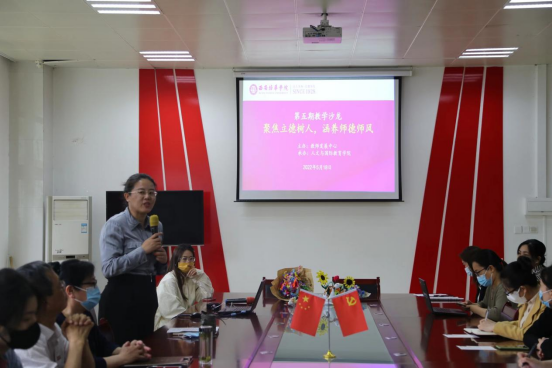活动伊始,人文与国际教育学院副院长赵洁副教授致辞,她首先对各学院教师代表的到来表示感谢,同时指出教师作为人类灵魂的工程师,必须塑造高尚的职业道德,以“立德树人”为根本,指导学生全面发展。