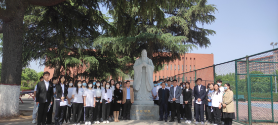 接着,由赵思梦、李佳宸同学领诵,带着50名同学在孔子雕像前齐声诵读了《大学》第一章。大家怀着朝圣之心、崇敬之情,庄严诵读经典,感悟儒家“修、齐、治、平”的理想情怀,接受中华文化精神的神圣洗礼。
