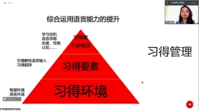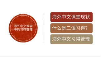 朱老师在多年的海外中文教学中积累了丰富的教学经验,她以自身教学经历为切入点,引出了海外中文课堂现状、什么是二语习得、海外中文习得管理三个方面内容,并分别提出了自己的教学建议。