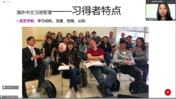 此外,朱老师还从教室布置、学生个体需求、教师提问等方面阐述了国际汉语课堂教学中应关注的细节,大量的教学案例让教师们了解到海外教学中具体的习得管理方法和教学技巧。朱老师说,在汉语教学过程中要始终以学生为本,根据学生特点,设计适合学生习得的各种环境,使学生在学习的过程中,能够得到个性的发展。