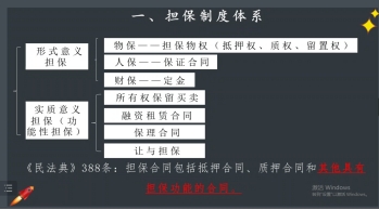 赵彦红老师便利用思维导图,简单明了地将整个担保体系分为了形式意义的担保和实质意义的担保,为同学们构建了一个良好的担保制度框架体系。
