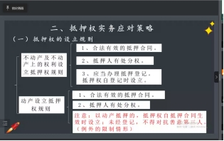 岁末寒冬,面对复杂严峻新冠肺炎的突袭,原有的平静生活被打乱,但人文与国际教育学院法学系的师生们,停课不停学,同心战“疫”,“上演”着暖心与温情,用更多的时间用于学习、交流提升自己。1月9日下午16时至18时,法学系教师、兼职律师赵彦红老师通过腾讯会议特意为法学系的同学们带来了2022年的首次讲座,此次赵彦红老师为大家讲解的内容为“《民法典》背景下抵押权及保证合同应对策略”。