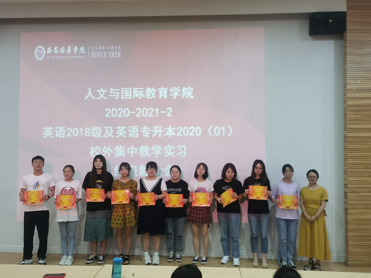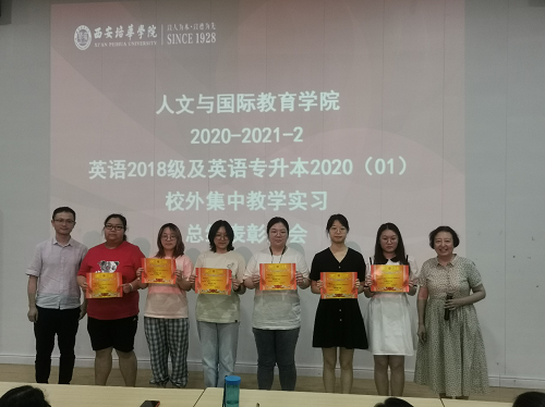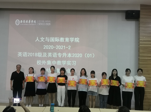 最后由甘世安教授、付丽伟副教授以及本专业带队教师给此次表现优异的同学进行颁奖,致此此次英语专业教育方向的实习圆满结束,也希望英语专业的实习工作能够办的更好!