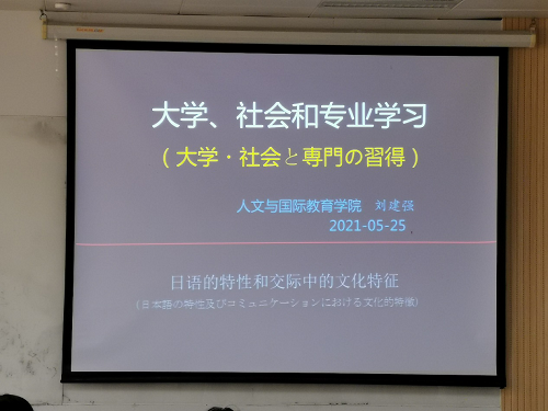为帮助学生进一步适应大学的专业学习,解决20级学生近期在专业学习中出现的思想认识和学习状态上较为集中的问题,5月25日下午,日语专业举办了题为“大学、社会和专业学习”的讲座。本次讲座由日语专业带头人刘建强教授主讲,外语系副主任兼日语专业负责人曹长春副教授、日语专业教师赵楠婷参加了此次讲座。