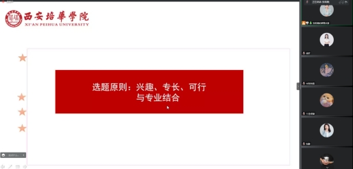 随后,由张莉霞老师详细介绍毕业论文撰写的基本流程,张老师对毕业论文工作各个时间节点需要完成的任务进行了详细说明并提出了具体要求,同时特别强调了论文选题一定要与本专业结合。