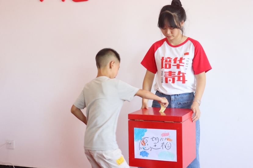 小朋友许下愿望投进愿望箱