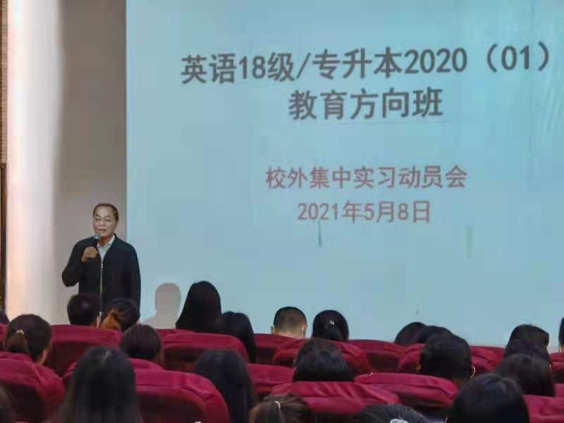人文与国际教育学院外语系英语专业大三一级学生即将开启校外实习之旅,值此之际,我院英语专业于J101教室为英语2018级和2020级01班学生召开了校外集中实习动员大会。此次校外实习时间为2021年5月10日到2021年6月4日,涉及223名学生14所实习基地学校,规模算是英语专业史上之最,因此如何安排好此次实习也是非常重要。