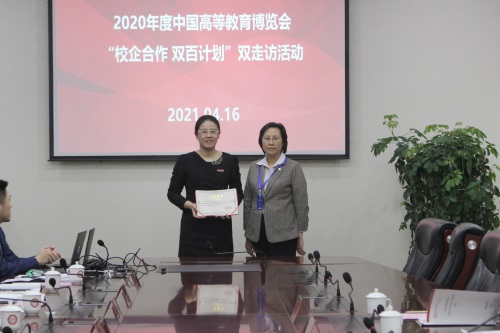 专家组组长吴静怡介绍了“双百计划”的背景和意义,希望通过此次活动能够进一步了解我校在校企合作方面的具体举措和成效,充分挖掘合作案例的亮点和特色,并向全国高校推广,真正将产教融合做真、做实,校企共同提升人才培养质量。专家组组长吴静怡向《以职业能力为导向的法律人才培养实践》案例负责人赵洁老师颁发了2020年度中国高等教育博览会“校企合作 双百计划”典型案例提名证书。