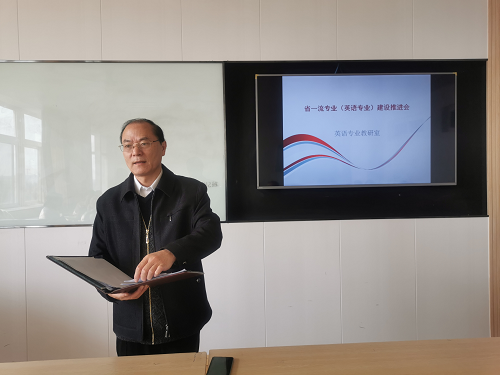 在此名单公布之际,我院外语系英语专业全员在甘世安主任的主持下召开了教研室会议。会议上甘教授首先感谢学院领导给予的大力支持及全院教工的支持。同时,他肯定了在过去几年中英语专业全员所做的努力,并与大家一起研讨了英语专业作为省一流专业建设点的下阶段发展规划。
