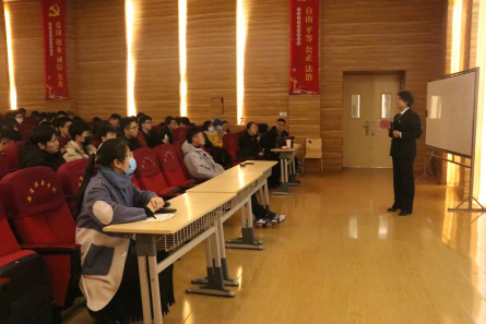 为了帮助我校法学专业的同学进一步树立就业意识,坚定理想目标,做好职业生涯规划。12月28日下午2:30,我校法学系特邀请到最高人民法院第六巡回法庭衡飞玲法官为在校同学作了一场以“智慧法院与法学本科实践教学”为主题的讲座,帮助同学们做好职业规划。讲座在法学系主任赵洁老师的主持下进行,我校法学系大二学生参加讲座。