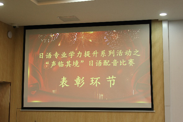 本学期,为检验教学成果,进一步提高日语各项能力、丰富课外活动,调动学生学习热情和积极性,日语专业推出了“以赛促学”的日语学力提升系列活动,并已成功举办了系列活动中的“学中写·写中学”妙笔生花日语书写比赛、日语朗读比赛及“天籁之声”日语卡拉OK比赛。期末将近,伴随着“声临其境”日语配音比赛的开展,本学期的日语学力提升系列活动也接近尾声。