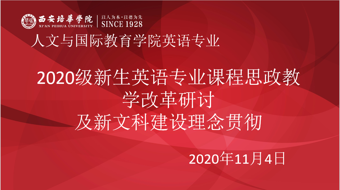 2020级新生英语专业课程思政教学改革研讨及新文科建设理念贯彻