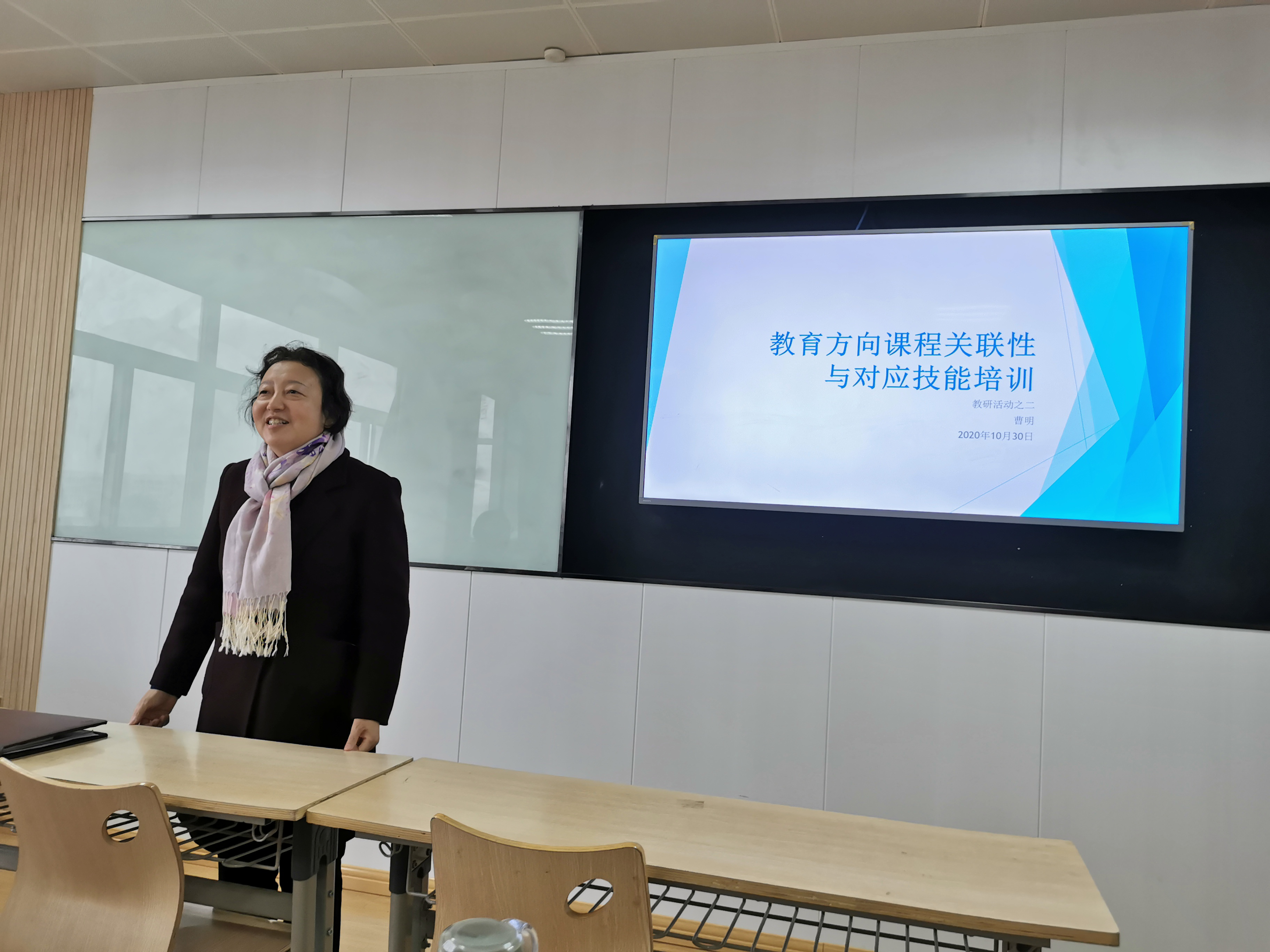我院英语专业教研室全员18人在甘世安主任的主持下,于2020年10月30日下午14:00-16:00在1501教室由曹明老师发起了英语专业关于教育方向课程关联性与对应技能培训的教研会议。教研过程如下: