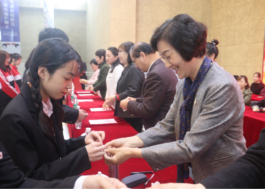 院徽则由我院优秀的学长、学姐为新生代表佩戴,这是表率、是互助、是合作、是优秀对接优秀的传承;新生戴上校徽,也同时将我院的荣耀,使命扛在肩上。新生是我院的“后浪”,也是我院注入的一股新鲜血液。新生们戴上院徽就意味着多了一份责任与担当,戴上院徽的此刻就正式成为了人文与国际教育学院大家庭的一员,我们志存高远、责任为先,严格要求自己的言行,不负学院对新生们寄予的殷切希望。
