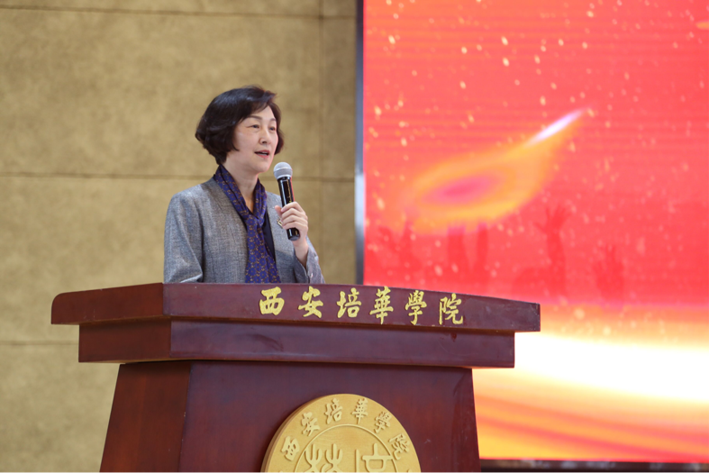 西安培华学院学术委员会主席、学位评定委员会主席、西安培华学院副校长刘越莲教授讲到:仰望星空必须脚踏实地,要逐步建立自信,管好自己,不能放任自己,创造属于自己的辉煌。同时希望大家在大学里学会学习、学会思考、学会生活。努力做有用的人、做成功的人、成为国家栋梁的人。