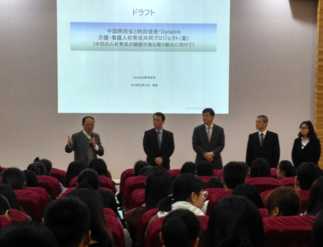 3月23日下午,日语系邀请陕西盛唐对外经济技术合作有限公司与其事业合作伙伴日本DynaLink株式会社举行了一场主题为“中国陕西省和陕西盛唐-DynaLink共同培养介护·护士人才事业计划”的宣讲活动。我校护理(介护)国际班的全体同学和日语系部分同学出席了此次活动。