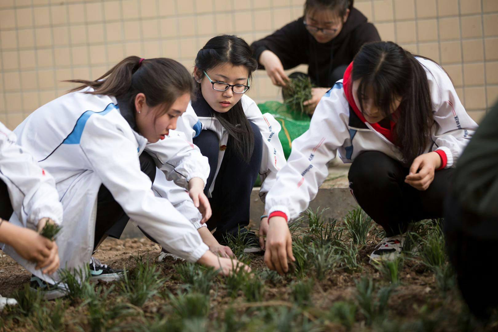 随后师生一道参与了种草活动,同学们也更是热情高涨,手持铁锹和小草,干劲十足,将一颗颗充满生机和希望的小草植入土里。